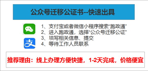 所需要的时间:公众号迁移、公证全程所需时间为2工作日内。