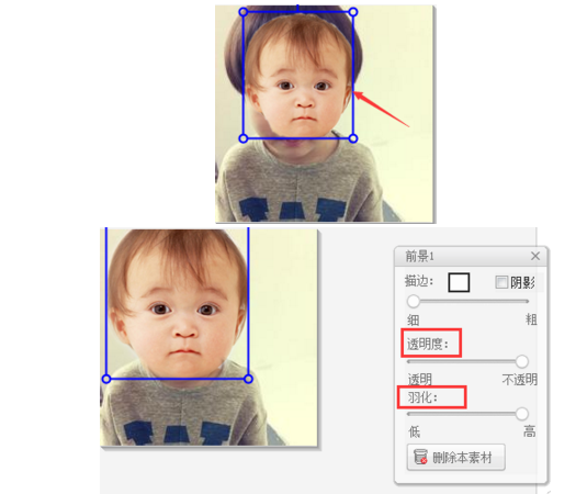 5、调整铺垫头的大小到背景图像,调整羽毛值,使毛刺小一点,然后点击确定保存。