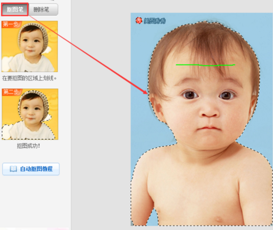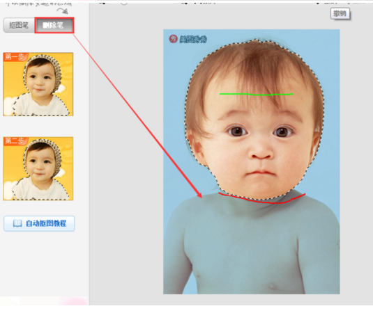 3、选择要选择的内容后,使用“删除笔”删除不必要的部分,只留下笔头部分。