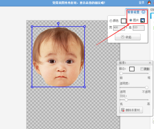 4、点击“背景设置”,选择图像背景,打开要传输的头像。