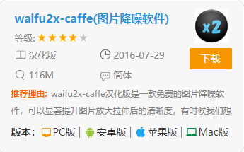《waifu2x-caffe》汉化版是一款免费的图片降噪软件,可以显著提升图片放大拉伸后的清晰度,可以做到放大图片而几乎不模糊,甚至还可以超越原图画质。