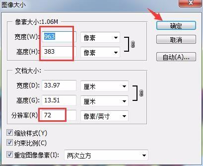 2、接着更改图像像素大小(宽度、高度),同时可以更改分辨率,然后点击“确定”按钮,这样图像的分辨率、像素、大小就调整完成了,如图: