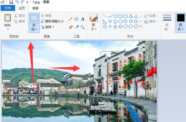 4、打开图片以后点击选择工具,在需要的位置选定需要的区域。