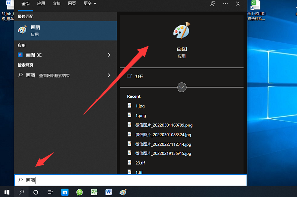 1、点击电脑任务栏的搜索,输入画图找到该软件打开。