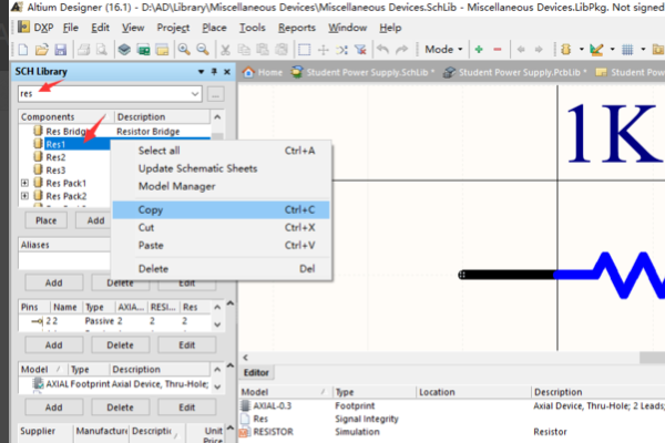 官方的元器件库(包括什么电阻啊,电容啊电源啊之类的)一般是Miscellaneous Devices.Intlib这个库(这个库是软件自带的库,如果你是从官网上下的那个新的压缩包,那得按照你的需求来查用哪个库)