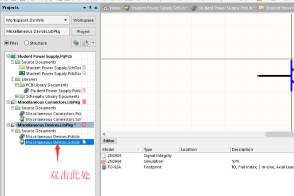 6、然后我们在界面里双击“miscellaneous devices.schlib”就可以出现如下页面了。