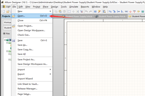 1、首先我们打开电脑里的altium designer 14软件,在工具栏处file选项下的open选项。