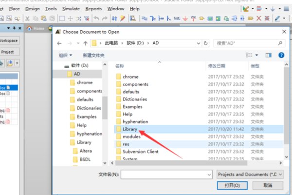 8、然后我们在界面里可以在里面查找自己需要的元件,这就是自带元件库的位置。