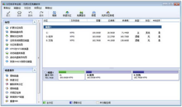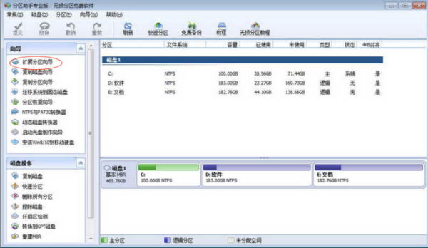 1、扩展分区向导是内嵌在分区助手中的一个很有用的工具,首先要先下载个分区助手。安装运行之后的样子如下图。