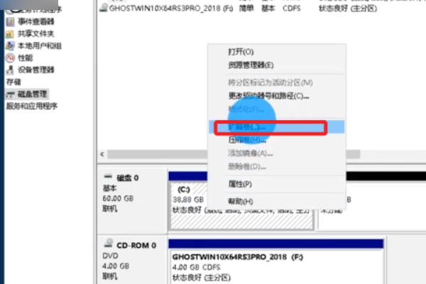 (键盘按下组合键WIN+R,输入“diskmgmt.msc”,或右键左下角的开始按钮,然后选择“磁盘管理”。)使用diskpart扩展C盘Diskpart是一个Windows系统自包含实用程序,它通过脚本或直接输入命令运行命令行来处理磁盘、分区或卷。