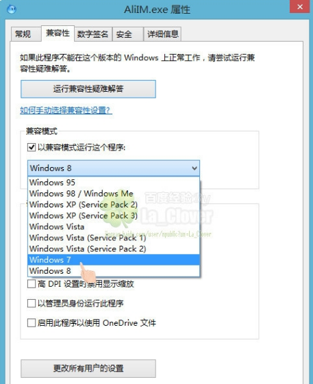3)勾选,以兼容模式运行这个程序,并尝试选择合适的版本。