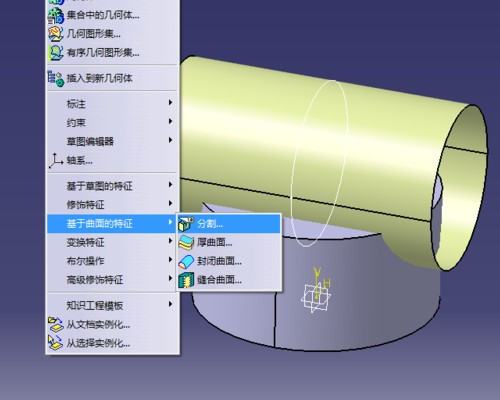 4,输入“部分设计模块”,首先选择几何,单击右键,然后单击“自定义工件对象”,然后选择“插入”工具栏——“基于表面的特征”,“削减”——选择模型表面的图标“拉伸”——选择切削方向并确定。