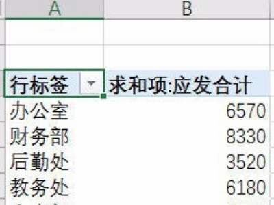 5、此时数据透视表就将各部门“应发工资合计”的数据汇总出来啦。
