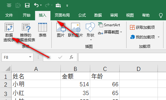 1、打开excel数据表,选中数据区域,切换到【插入】选项卡,单击【表格】组中单击【数据透视表】按钮。