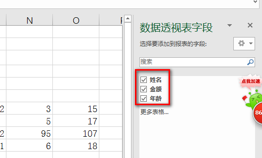 4、点击确定数据透视表后,在右侧把选项都勾选上。