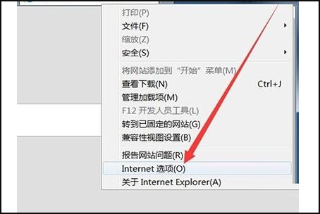 3、接着,在浏览器主页,点击菜单栏上右上角的工具-Internet选项,如下图所示,然后进入下一步。