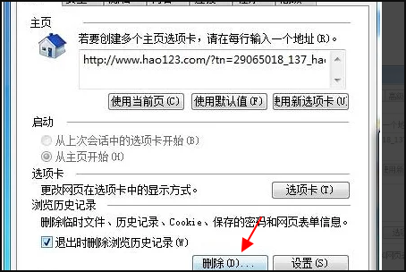 4、然后单击删除历史记录,清除win7系统IE浏览器上的历史记录,这样就完成了。