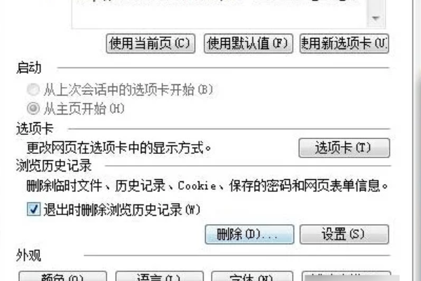 3、如果选择“最近一次的正确配置”启动无效的话,我们尝试进入安全模式,在系统IE浏览器上,点击菜单栏上的“工具”-“Internet选项”,然后点击“删除”历史记录,将系统IE浏览器上的历史记录进行清空,看看是不是因为浏览器的缓存导致的系统蓝屏。