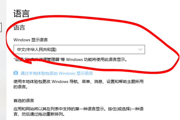 7、这时回到语言设置,在Windows显示语言里,把默认语言设置成中文(中华人民共和国)。