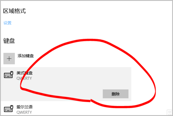 6、这时,语言选项英语(美国),里面默认的美式键盘就可以删除了。