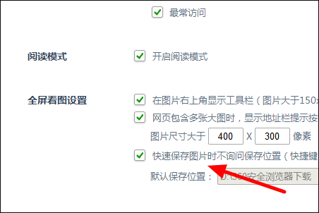 3、然后在弹出来的窗口中点击打勾“快速保存图片是不询问保存位置”选项。