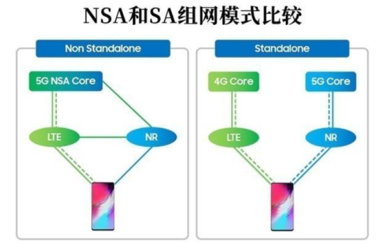 3、NSA没有5G核心网,SA有5G核心网,在NSA组网下,终端双连接LTE和NR两种无线接入技术;在SA组网下,终端仅连接NR一种无线接入技术。