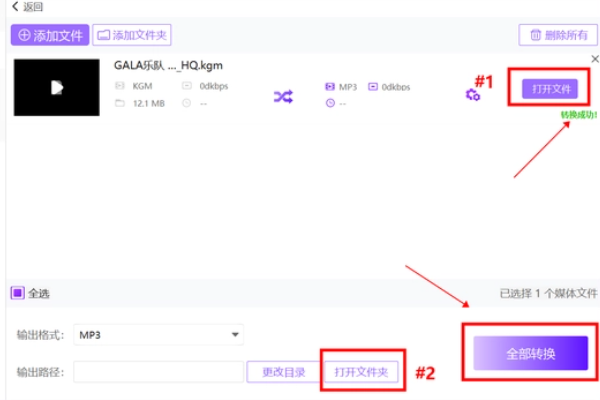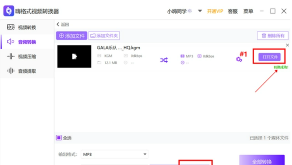 4、点击【全部转换】按钮启动格式转换。等到界面提示“转换成功”,代表格式已经转换完成。