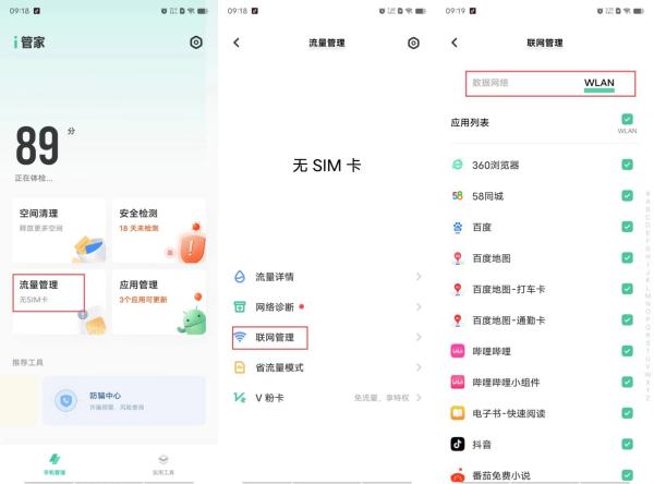1、进入i管家--流量管理/更多工具--联网管理--点击软件后面图标--显示红色“/或X”,即代表限制软件连接当前的网络。