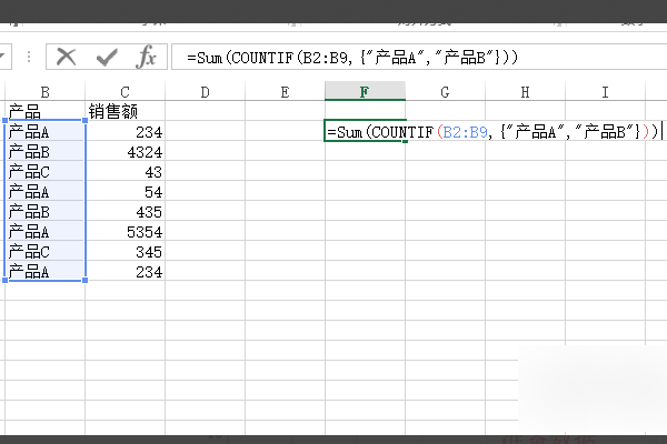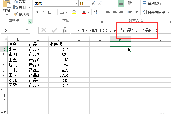 4、如果想统计多个内容项的个数,那么我们需要将他们放到大括号里面。