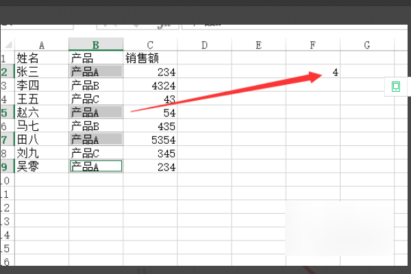 3、接下来输入完公式以后回车就可以得出统计个数了。