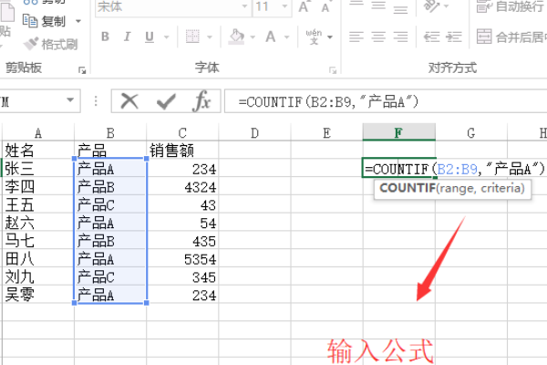 COUNTIF函数参数说明: