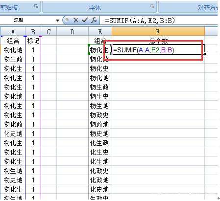 即条件区域是A列,E列为求和条件,B列为实际求和区域。