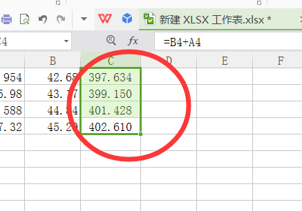 3、点击多设置几位小数位数,即可发现此时求和值显示的位数增加,计算的数据结果已经与计算器求和的数值相等。