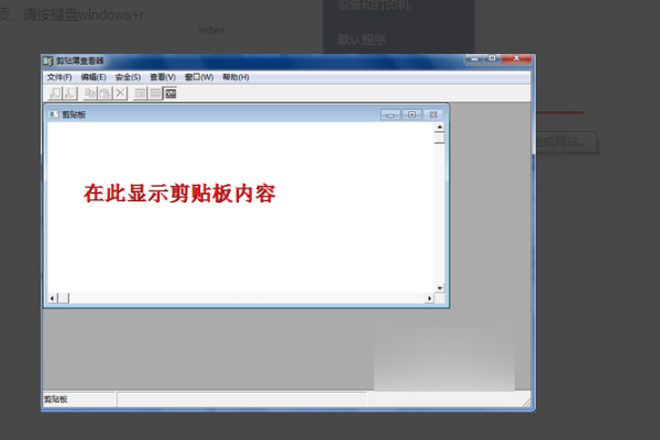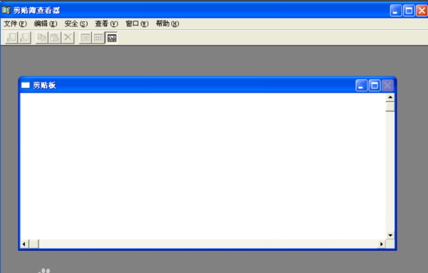 3、如图所示,这个程序即为系统剪贴板程序,在下面的空白页面中,是系统中的剪贴板里面的内容。下面将做一个试验,来看一下剪贴板是怎么工作的。