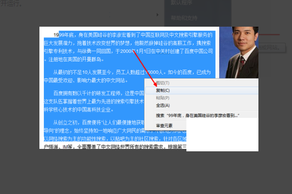 4、在网上找到一段文字,如图所示,然后点击右键复制下来。