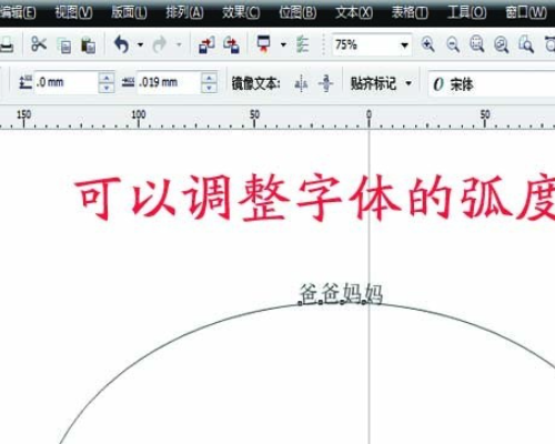 5、在cdr中左上角一栏,可以调动弧形的弧度,同时按住快捷键“f10”修改字体的间距。
