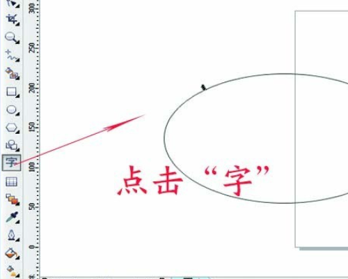 3、同样在左边一栏里,点击“字”这个符号,然后在所画的椭圆上点击一下。