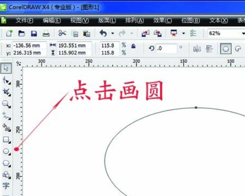 2、在cdr左边一栏里,点击第八个圆,画一个椭圆。