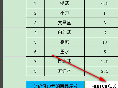 3、然后函数中的查找值输入为10,如图所示。