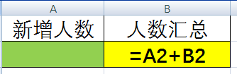 第二步:在B2单元格输入公式“=A2+B2“;