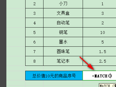 2、然后输入函数=MATCH(),如图所示。