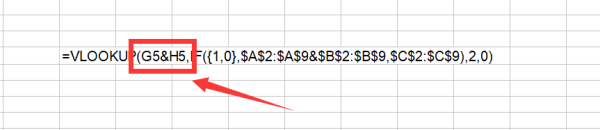查找值:G5&H5,需要查找的是两个条件,但是vlookup函数只能查找一个条件,所以需要用