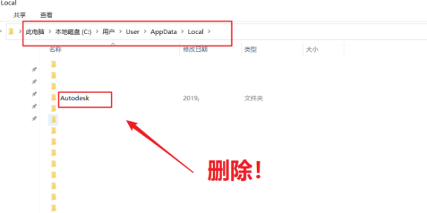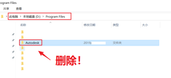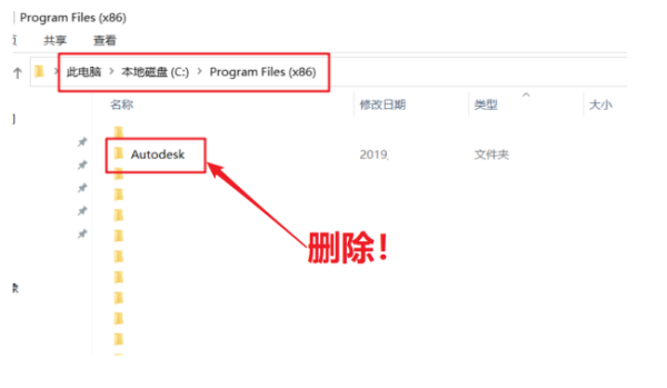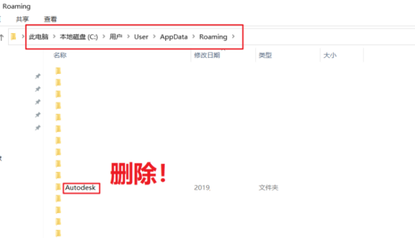 2、电脑重启后,去这些位置看看有没有CAD卸载残留文件(以我电脑为例,自己找这些位置),然后选中文件夹按Shift键+Delete键(永久删除),一定看仔细别删错了,虽然直接搜索关键词“Autodesk”等删除很方便,但不建议,这里要做的是完整删除: