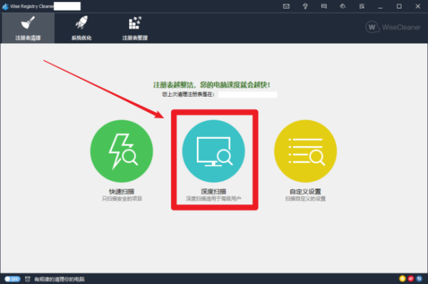 (11)打开注册表整理软件:Wise Registry Cleaner(下载地址:网页链接),点击 深度扫描