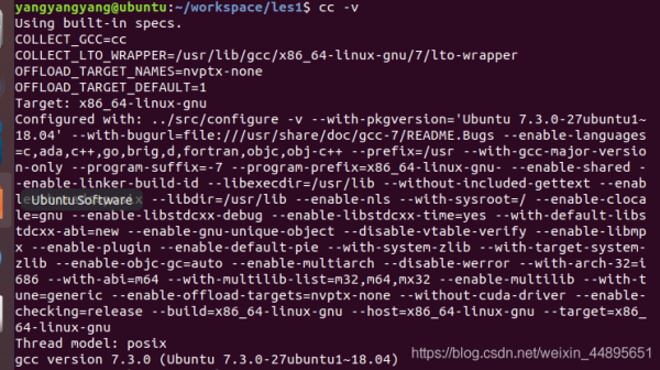 和安装vim类似使用sudo apt-get install gcc,安装完成后可以使用cc-v来查看编译器版本信息等。cc -v界面如下: