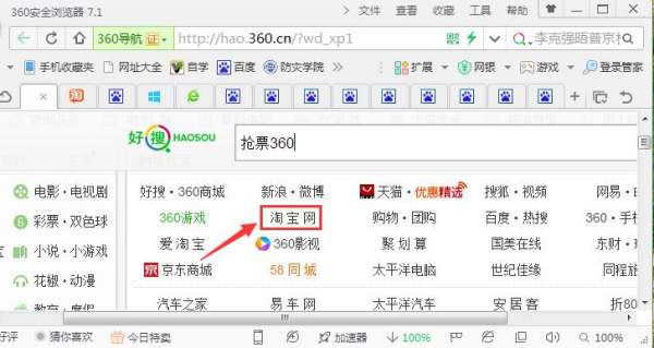这是登录方式不对造成的,不要在地址栏输入淘宝网的网址,这样容易出错,导致网页崩溃,无法打开;建议从360浏览器的主页面进入,方法如下: