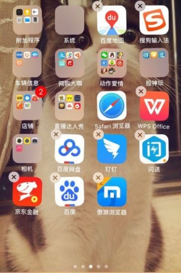 1、点住一个APP软件时过了几秒钟,APP左上角会出现一个小X,这时就可以移动APP软件,这个小X也是能卸载APP的。