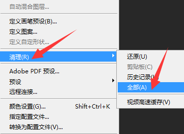 7.然后在【编辑】的下拉列表中找到【清理】全部选项按钮,进行清除缓存即可。