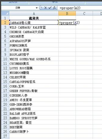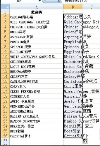 4,将大写字母转变为首字母大写,其余字母小写的样式。将列B删除。重新将光标移动到B2单元格输入公式=proper(B2),