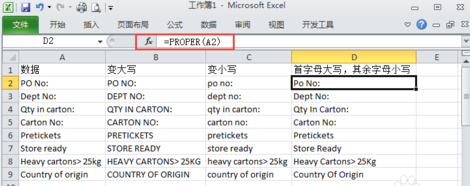 4.若要将单元格中的所有字母转换为首字母大写,其余字母小写的形式,可以使用PROPER函数。